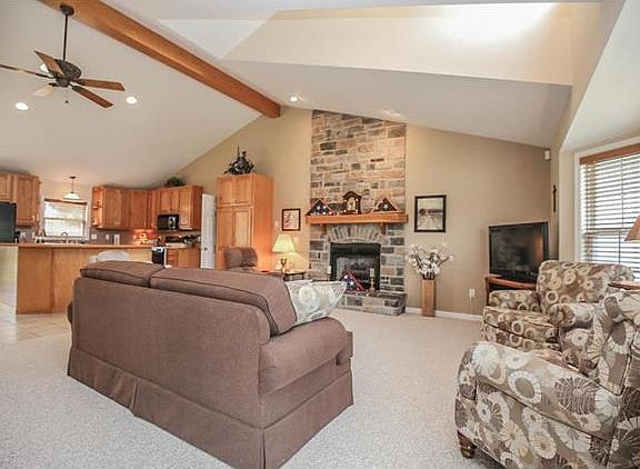 Stunning atrium ranch home on 1.3 acre. This home offers great curb appeal. You'll love the covered wrap around porch. Spacious open floor plan. The great room is vaulted with double sky lights, floor to ceiling brick raised hearth gas fire place and a bay window. Spacious master suite with bay window, coiffured ceiling and a luxury bath that has a jetted tub and walk in shower. 2 additional bedrooms on the main level. The kitchen has beautiful golden oak cabinetry, a center island breakfast bar with adjoined dining area. Huge main floor laundry with plenty of cabinets for storage. One of the focal points is the atrium bay with turned open spindle staircase to the finished lower level. The lower level has a huge family room, recreation area with wet bar a 4th bedroom, office and a full bath. There is a 3 car side entry garage and a huge deck off the back the walks down to a patio. This beautiful home is move in ready!