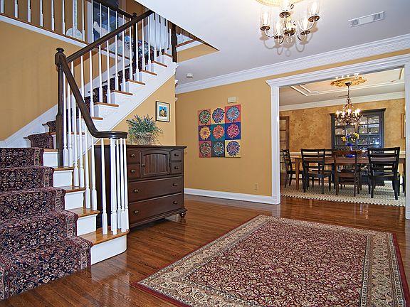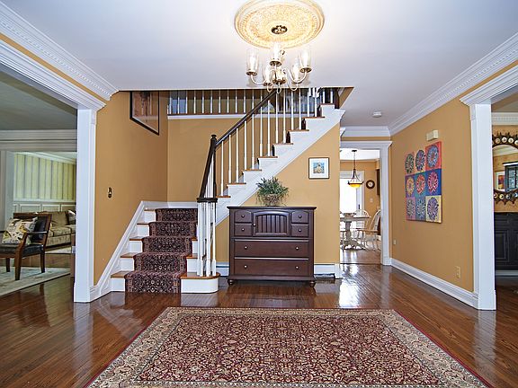 Welcome Home! Warmth exudes from the large entry with custom molding throughout the home. Warm up with the dual fireplace between the kitchen and the family room. The kitchen has a new stainless steel gas oven and a new refrigerator. There is a large deck off of the kitchen leading to the wonderful back yard. There is a finished basement with an office with an outside entrance. All of this and more on a desirable cul de sac street.