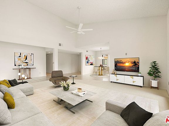 Sunrise Country Club is impeccably sited within its beautiful golf course community surrounded by panoramic mountain views, gated with 24 hour security in sought after Rancho Mirage. This 3 bedroom 2 bath end unit offers abundant natural light with an open concept great room with vaulted ceiling, featuring a spacious living room, dining with enclosed atrium featuring a wet bar, a covered terrace is accessible through wall of glass where lounging or outdoor dining enjoy link and fairway views. Additional features include an inside laundry room and an oversized garage with room for a golf cart and ample loft storage area. The architectural clubhouse includes a bar and grill, lounge, grand dining room with stunning lake and fairway views offering lunch and dinner, the club includes the 18-hole golf course, tennis and pickle ball courts, abundant swimming pools/spas and fitness center. Updates through the years include energy efficient dual glazed windows and Fleetwood slider. First class dining and shopping and medical are conveniently located within easy reach.