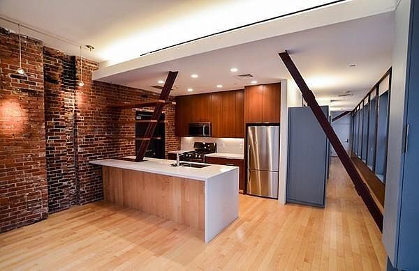 No broker fee! Available 9/1. The epitome of urban living, this spacious apartment is full of unique character you just can't find in neighboring apartment buildings. Exposed steel beams and brickwork compliment the beautiful hardwood floors, high end cabinetry and Bosch appliance package, and detailed tile work in both bathrooms. Gas fireplace, silestone kitchen, under cabinet lighting, built in storage- this place has it all. Washer and dryer in unit. Oversized windows make this 950 SF Penthouse corner unit full of light throughout. Central air. Can be configured as a 1 or 2 bedroom with an adjustable wall. Great for a home office for WFH. CAT FRIENDLY. This is a 5th floor walk up with no elevator but it is worth the climb! Pictures show apartment configured as a 1 bedroom. Semi-permanent wall can be installed to divide the space into two bedrooms which both comfortably fit a queen sized bed. Must see video tour before seeing in person.