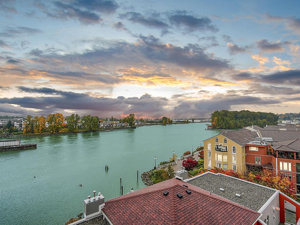 8 Laguna Court - This right on the waterfront with ABUNDANT WATER VIEWS FROM ALL WINDOWS concrete tower is well maintained and has a pool + gym. This 1541 square foot CORNER HOME has an awesome layout for entertaining and perfect lines for arranging furniture and a windows galore. Sit by the fireplace as you look out to the River. Entertain in the large dining room. This home has an open yet separate kitchen for mornings by the deck for a more casual setting. 2 bedrooms and 2 bathrooms and an ensuite with a walk through closet and a 5 piece bathroom with separate shower and tub. Full house sized laundry room not just a closet. Walk your dog out to the boardwalk and the River Market and downtown New West. Skytrain is 10 min on foot. One parking. One dog allowed. Rentals allowed. QUAY LIVING