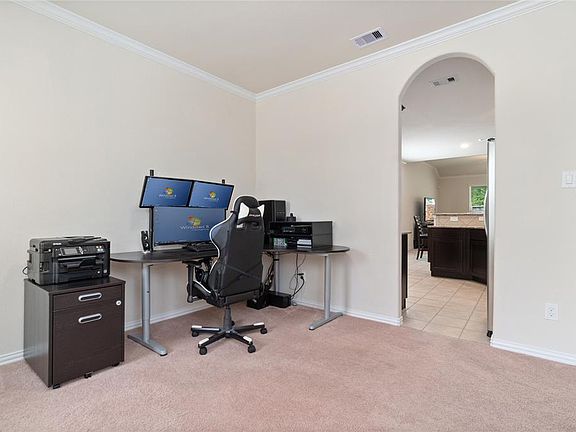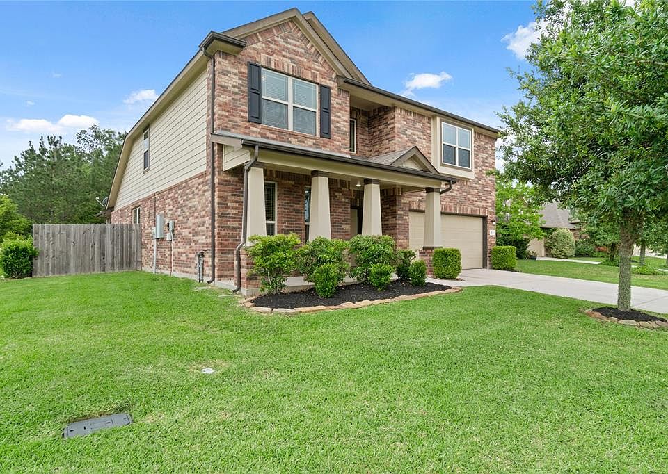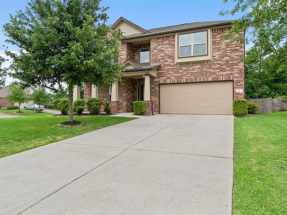 Beautiful 4 bedroom 2.5 bath home on large corner lot on cul-de-sac street in a great neighborhood in the heart of Conroe. Perfect for entertaining, the open floorplan features formal dining, crown molding, arched walkways, and high ceilings. Gorgeous kitchen with granite counters, breakfast bar, and stainless steel appliances opens to the breakfast area and large living room. Private master suite downstairs with spacious double-sink granite topped vanity, separate jetted tub & oversize shower, and walk-in closet. Large game room and 3 secondary bedrooms upstairs. Covered back patio to enjoy huge fenced backyard. Gutters and full sprinkler system. Great location with easy access to I-45, The Woodlands, Conroe, medical, shopping, and dining.