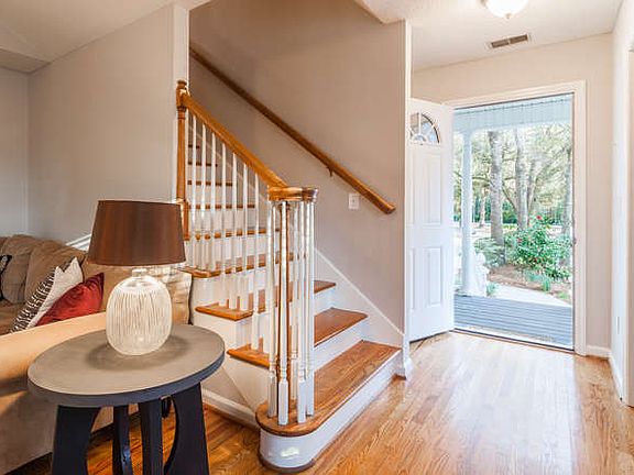 Location, location, location! Are you looking for a charming and well-maintained house that is just minutes to Downtown Charleston? Please look no further because this three bedroom, two and a half bath home is nestled in a friendly cul-de-sac with NO Regime or HOA fees. You have unlimited ways to enjoy this gorgeous, cottage-style design and entertaining your family and friends is simply a breeze with this perfect setup. Upon entering the front foyer, the family room will impress you with an abundance of natural light provided by the vaulted ceilings as you walk along the glistening hardwood floors. The inviting fireplace makes it effortless to kick back and relax on your plush sofa after a long day at work. The living room flows perfectly into your outdoor entertainment area as well as the formal dining room or office space. Picture spending many wonderful afternoons on your screened-in porch curled up in your hammock with a good book, while admiring the magnificent oak tree and beautiful landscaping. You will be pleasantly surprised by the large, fenced-in backyard that provides ultimate privacy for social gatherings and security for any pet lovers. The gourmet eat-in kitchen boasts high-end stainless steel appliances accompanied by plenty of countertop space to set up your culinary skills. Whether you are enjoying a morning coffee or hosting a casual dinner, the bay window adds charm to the cozy dining area. Attached to the kitchen is a sizable utility closet with a generous pantry. This is also a mudroom because it connects to your enormous two-car garage that gives plenty of room for storage and organization. While you make your way up the stairs to the second floor, you will enjoy the fresh new carpet throughout all three spacious bedrooms. The master retreat is roomy with two large walk-in closets. The en-suite bath has beautiful tile flooring, a relaxing jacuzzi tub, separate shower, and a dual vanity. The efficiency of space in this home is simply remarkable and the location of this neighborhood is extremely desirable. Northbridge Park is less than a mile up the road with everything Charleston and its beaches have to offer at your fingertips. Be sure to schedule your appointment, it will go fast!