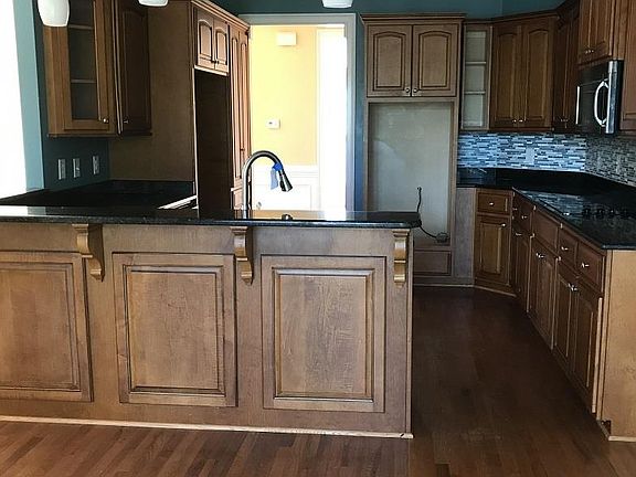 - Kitchen: Counter Tops-Granite, Eat In, Floors-Hardwood, Cabinets-Stained, Backsplash-Tiled, Recessed Lights