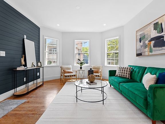Buiders Warranty and all new appliances- new luxury gut remodel with fresh paint & hardwood floors, new windows, new gas-powered central ac, new roof & vinyl siding, electric, hw tank, heating systems, & plumbing! All this with a walk Score of 92 out of 100! Drop your coat in the private foyer & enter your peaceful & contemporary oasis. The well-lit living room w/ bay windows, a warm & inviting dining room, & modern kitchen with breakfast nook. Primary bedroom w/ en suite bath & deep shelf sink offers great storage & sleek design. 2nd bedroom just down the hall along with another full bath with tub, & your in-unit laundry. Basement storage & 1 deeded, not tandem driveway spot. The central location of this property in a vibrant Somerville neighborhood ensures easy access to a multitude of amenities a short distance away. From Gilman Sq T station, Union Sq, Winter Hill, Davis Sq - shops, restaurants & entertainment options are all within reach. Nothing to do but move in!