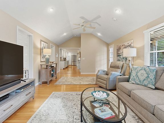 Welcome home to this beautifully renovated and meticulously maintained gem! Step onto the welcoming farmer's porch and enter through the mudroom into a spacious family room featuring a tray ceiling and gleaming hardwood floors. The first-floor bedroom offers privacy and convenience with direct access to a stunning main bath complete with a Jacuzzi tub, separate shower, and laundry. The gourmet kitchen is a chef’s dream, showcasing high-end Bosch appliances, sleek quartz countertops, stylish pendant lighting, and dining area—perfect for entertaining. Enjoy the inviting living room with its elegant fireplace. Upstairs, you'll find three generously sized bedrooms and a fully updated bath. The finished basement adds versatile living space. Stay comfortable year-round with energy-efficient mini splits, and step outside to unwind on the deck under the retractable, motorized awning with remote control. Additional highlights include a built-in 2 car garage and countless modern updates!