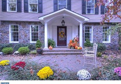 Want it all? Here it is! Gorgeous four bedroom, two and a half bath center-hall Colonial with inviting portico and stone facade. Gracious turned staircase, generously sized living room and dining room with warm decorator colors. French doors in living room open to warm family room with brick fireplace w/woodburning stove. And then there's the kitchen. Exquisite gourmet kitchen with Brookhaven and Woodmode cabinets; quartz countertops; oversized center island with loads of storage and microwave shelf; commercial six-burner gas stovetop; stainless steel refrigerator; double wall ovens w/convection; built-in bookshelf and display cabinet; built-in wine bar w/cooler and display cabinet; recessed and display lighting and Brazilian cherry floors and generous dining area make it the perfect space. Master Bedroom offers upgraded bath with oversized shower, tile flooring, quartz countertops and outer vanity has a faceted glass vessel sink plus custom armoire and walk-in closet.Finished basement provides work space, game room, dinette area and generously-sized office. Beautiful day? Enjoy the restfulness of the screened porch or be refreshed in the gorgeous in-ground pool w/new cement surround and landscaping. Plus 2-car garage. Whew! Who says you can't have it all!