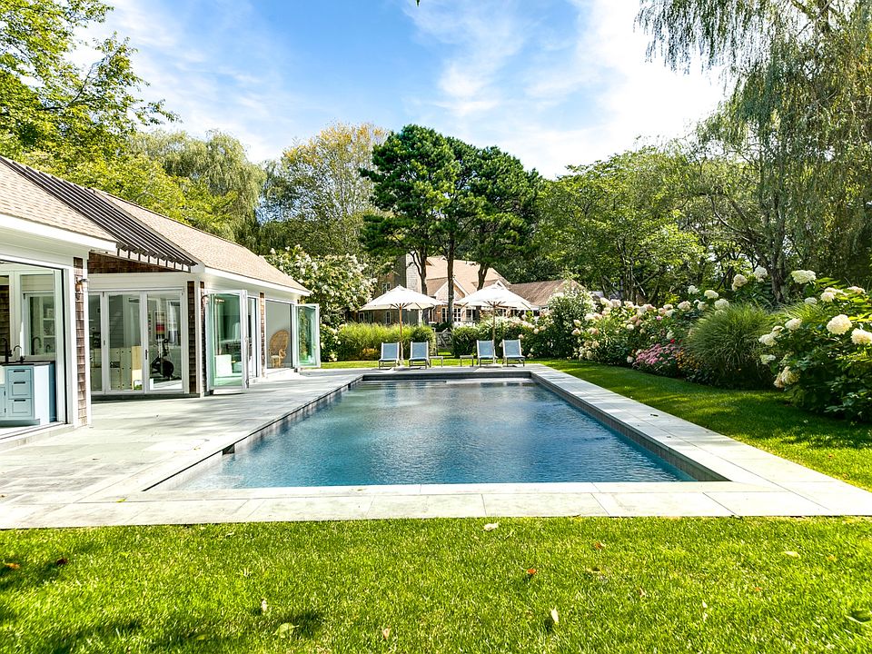 Rental Registration #: 24-1383 **Available for JUNE 2026 @ $60,000** Located less than a half mile from East Hampton Village at the end of a quiet cul-de-sac, this recently expanded and rebuilt 7 bedroom, 5.5 bath home has every luxurious amenity at your disposal. Main level consists of a gracious entry foyer with half bath and office, a spacious eat-in kitchen with central island and high-end appliances, banquette seating and vaulted ceiling living area with fireplace. A dedicated dining room, large den room with TV, mudroom, incredible screened-in porch area and a first floor bedroom suite complete this first floor. Upstairs boasts 4 bedrooms and 3 baths, including the primary suite, as well as a 2nd level laundry room. The lower level is all about fun & plan, with a gym area, entertainment room for TV and play, plus 2 bedrooms and a shared bath. Outside, a spacious deck with retractable awnings provides seating and dining with an outdoor kitchen in place, plus an outdoor shower. The fenced-in yard is an idyllic setting for outdoor enjoyment and entertaining. Overlooking the gunite pool and extensive bluestone patio, an expansive pool house has glass walls that fold back to open the living spaces for indoor-outdoor enjoyment. There's a living area with Peloton, dining area, wet bar, and full bath. In the evening, gather around the fire pit set in the huge lawn with colorful gardens and beautiful large trees. You may never want to leave this piece of paradise but if you do, the delights of the village center are only a few minutes away. With a nice open layout and modern decor with chic accents, this home is a rental opportunity that should not be missed.