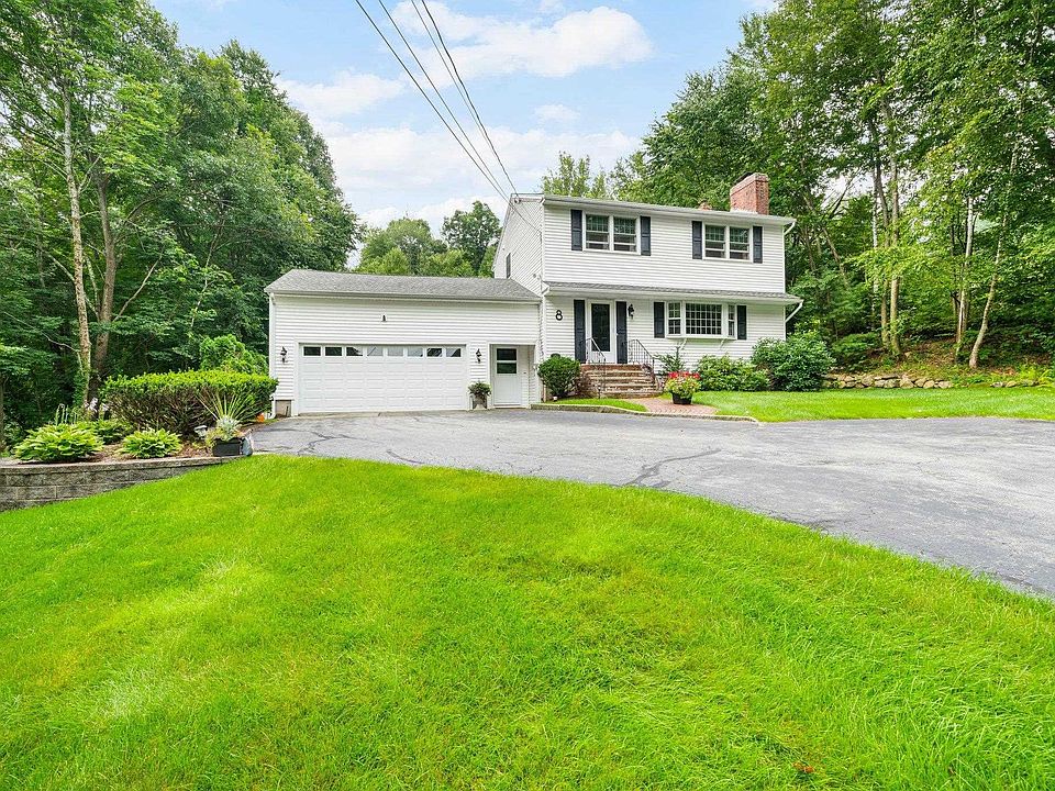 Exclusive chance to acquire this meticulously maintained home by its original owner in coveted Bedford featuring 3-bedrooms, 1.5-bathroom colonial with a 2-car attached garage. This home is set on a serene 1.2-acre lot with 150 feet of frontage on a private dead-end road. The inviting brick walkway and front steps lead into the interior, showcasing resplendent hardwood floors. The main level features a spacious eat-in kitchen with granite countertops, stainless-steel appliances, and ample storage. A refined dining room adjoins the kitchen, while the generous living room boasts a captivating bay window. A convenient side entrance leads to a practical mudroom with a side-by-side washer/dryer setup. An enticing 3-season porch promises relaxation. Upstairs, three comfortable bedrooms with generous closet space are complemented by a full bathroom. The lower level is thoughtfully utilized, offering a partially finished family room warmed by a woodstove, perfect for cozy gatherings. Updates like new windows, modern septic, and newer roof reflect the home's care over the years. Enjoy serenity outdoors on the expansive deck, overlooking your private expanse. A supplementary shed strategically positioned in the backyard provides valuable extra storage. The residence combines convenience and tranquility with proximity to shopping, dining, and schools. Don't miss this opportunity, schedule your showing today!