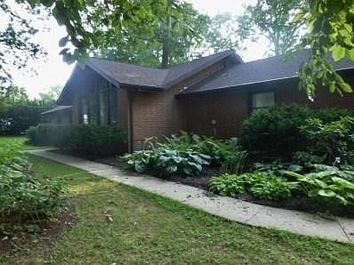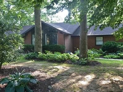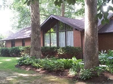 Lovely contemporary ranch home with wood floors throughout, updated kitchen with Corian countertops and backsplash, vaulted ceiling with wood beams and brick accent wall in family room, 1st floor laundry, beautiful mature landscaping, screened porch, paver stone walkway.