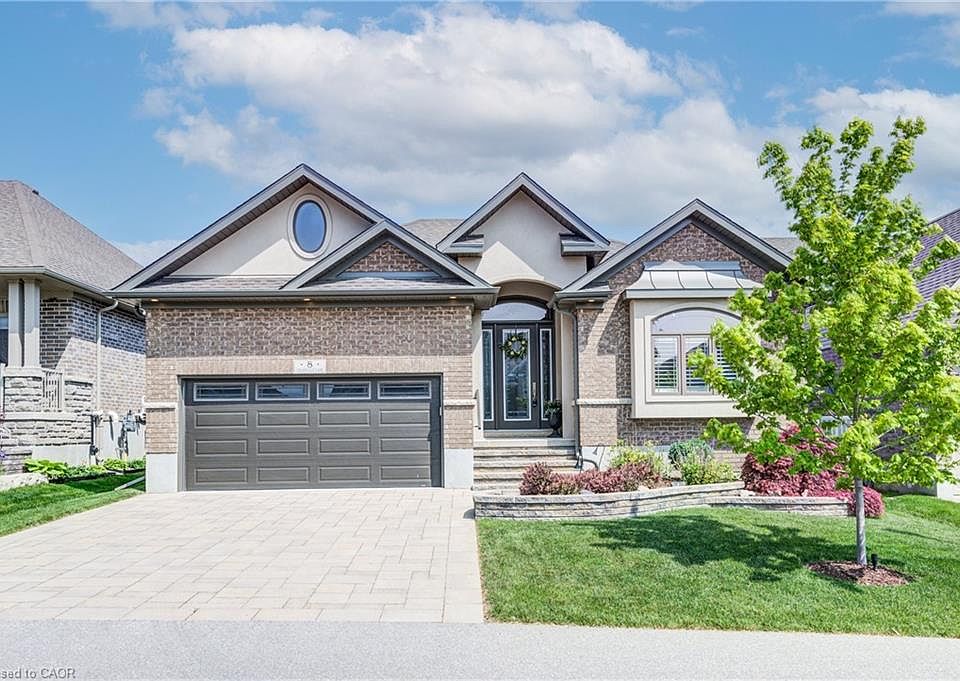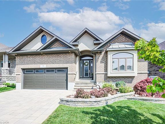 Welcome to 8 Loganville Lane—an impeccable, almost new Grand Model, nestled on a premium lot backing onto green space. Built in 2019, this popular 2-bedroom + den bungalow offers elegant design and exceptional craftsmanship. The main floor boasts 12-ft ceilings, hardwood flooring, gas fireplace, custom blinds on remote, and a striking coffered ceiling. The upgraded kitchen is a chef’s dream with quartz countertops, stainless steel appliances, wine fridge, under-cabinet lighting, and peninsula seating. The primary suite overlooks the greenery and features a walk-in closet and luxurious ensuite with a low-barrier shower and stone double vanity. The front bedroom charms with a window seat and cathedral ceilings. A builder finished basement offers incredible flexibility with a full kitchen, 4-pc bath, large windows, and two additional rooms ideal for a gym, office, or guests accommodations. Outdoors, enjoy a composite deck, glass railings, gas line for bbq and fire table, irrigation system, and heated double car garage. Direct access to trails, a courtyard, and a tranquil trellis-lined setting complete this rare offering. Energy Star rated with 200-amp service, EV rough-in, and central vac rough-in. Stonecroft’s 18,000 sq. ft. rec center offers an indoor pool, fitness room, games/media rooms, library, party room, billiards, tennis courts, and 5 km of walking trails. Come live the lifestyle at Stonecroft!