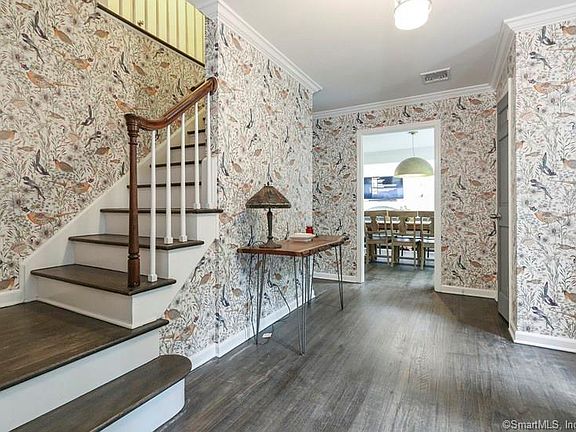 Connecticut country living with urban flair Do you want to have your own brand new completely enclosed raised vegetable garden? Sit around your cool iron one of a kind fire pit toasting marshmallows and sipping wine? This is your house The current owners have given this home an amazing makeover. From the minute you walk in, you will love the open feeling this house gives. Over 2800 sq.ft including a finished lower level. The renovated kitchen is for today's buyer. Concrete counters, white subway tile, open wood shelving and beautiful blue cabinets plus new stainless appliances make this a chef's kitchen. The Dining room has a wet bar and is open to both kitchen and family room for easy entertaining. The cathedral ceiling in the family room has a floor to ceiling white brick fireplace. Sliding french doors open to a deck which overlooks the private backyard. Upstairs you will find a wonderful master suite with full bath and walk in closet, three additional bedrooms, full bath and laundry room Perfect spot for playroom or office can be found in the lower level. The property is gorgeous The owners just finished a raised vegetable/flower garden ready to be planted. The landscaping is filled with perennials and flowering trees. Its your own private oasis in Wilton. Less than 10 minutes from town, schools, train. It is perfect