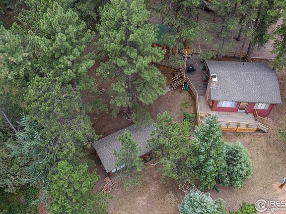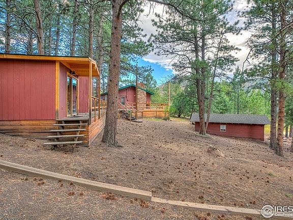 The Mountains are calling… Opportunity abounds at this 1.44 acre Mountain property in picturesque Pinewood Springs. Located 9 miles up from the town of Lyons and 12 miles down from Estes Park. Perfect Mountain home with two bedrooms, full bathroom, barn wood style flooring, charming and refreshed kitchen, farm door and great wood burning stove in the living area. Bunkhouse has a studio feel with open living, sunken kitchen with counter to ceiling windows and bar dining, twin over full bunk beds and ¾ bathroom. Beautiful vaulted, wood paneled and beamed ceilings. Separate and lovely work from home Office space is just the right size with double sliding doors, vaulted ceiling and wood & stone accents. Round Workshop or Studio space features built in shelving and benches, perfect for an artist, weekend projects, or could be converted to fun hangout space. Relax on the expansive deck that flows between the Cabin, Workshop and Office and overlooks the large courtyard and Bunkhouse. Enjoy living in the mountains with the convenience of county maintained roads. Abundant recreation out your front door with over 800,000 acres of Roosevelt National Forest just a short stroll down the road, enjoy hiking, biking, fishing, ATV and more. Colorado living at its best! Fenced yard for your furry friends. Incredible opportunity to own a very unique property. Live in the main Cabin, rent Bunkhouse or use as mother-in-law family & guest space ~ Bring your imagination and enjoy all this property has to offer.