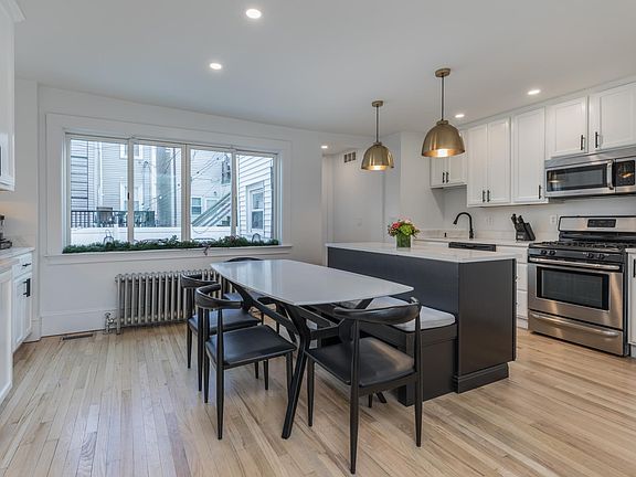 Beautiful, pet friendly, renovated 3 bedroom single family ready for its new residents. Bright stand alone home with open concept kitchen & living space equipped with a fully outfitted kitchen, quartz countertops, island & built in dining. The living room with bay windows is incredibly inviting plus built-ins with an electric fireplace round out the space. A full bath and laundry room complete this level. A large picture window invites you out to your private outdoor oasis with direct access off the kitchen. A massive deck with bar seating is the perfect place to entertain. The deck flows into the large backyard equipped with high end pet turf for low maintenance. In addition the owners outfitted the backyard with outdoor furniture, dining set & fire pit for the tenants enjoyment. The second level holds 2 king sized bedrooms with double closets. The third bedroom is perfect for a guest space, home office or nursery. A second renovated bathroom complete the top floor. Bonus: Basement storage VIEW FLOOR PLAN. PETS OKAY. CENTRAL AIR FULL BROKER FEE, 1st MONTH RENT & SECURITY DEPOSIT DUE FROM TENANT AT LEASE SIGNING Lease unit 8/31/26 with option to renew/standard 12 month lease