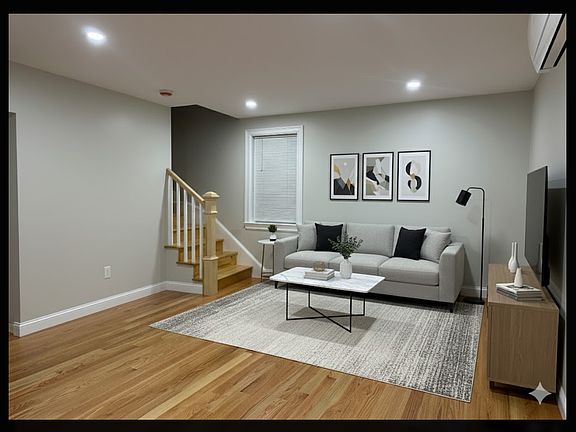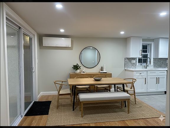 Completely renovated 3-bedroom, 3-full-bath home featuring a primary suite, open floor plan, quartz countertops, stainless steel appliances, hardwood flooring, and dining room with slider to private deck. Includes mini-split heating and cooling, in-unit washer/dryer, basement storage, and parking for up to 4 vehicles. Conveniently located near commuter rail, restaurants, shops, and major highways.