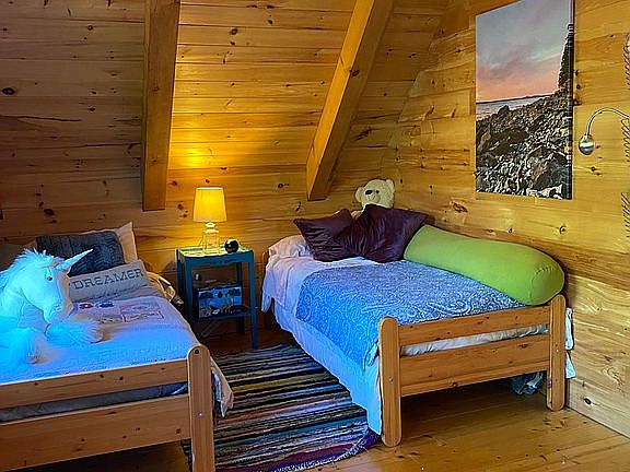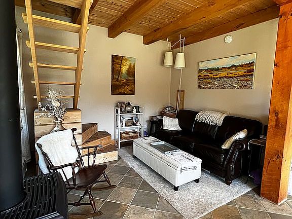 Incredible handcrafted post and beam with crafted details throughout, all overlooking Gardner Lake. Co-own lake front 4 acre peninsula with beach, wooded trails and boat launch.