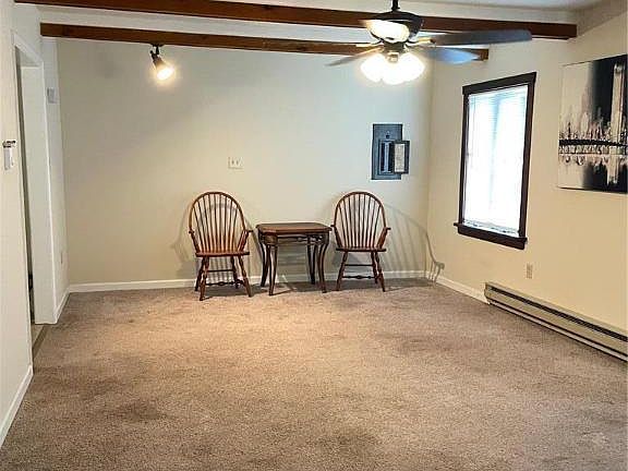 Attention first time home buyer or investor! If you are looking for a sweat equity opportunity for residence or rental this is a great choice. Located in the scenic countryside, with Bear Creek three miles away, close to Allentown this is peace and quiet but nearby restaurants, shops and the PPL Center! This home is a two/three bedroom, one full bath. Third bedroom needs a closet or use as an office. Large entry previously used as a family room. The stove that was used for heat was removed but has gas line still installed. Spacious eat-in kitchen, large living room with beams and built-ins and walk AC unit, spacious bath and laundry room with plenty of storage space with closet and built in cabinets. Features include: Electric baseboard heat with thermostat in each room, built in wall unit, ceiling fans w/lights in all rooms, hardwood floors under carpet in some areas, two car garage with inside access, patio, two sheds, 1 oversized with propane heater and electric and 1 smaller garden shed with electric. With some TLC this could be a great property. Rehabbed in 2017. The property is being sold as-is. Seller will make no repairs. Listing agent related to Seller.