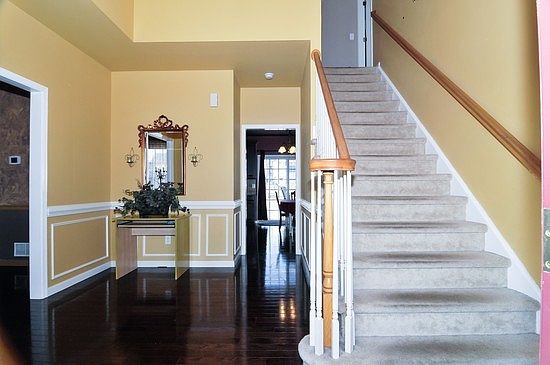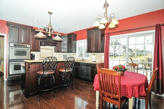 Offering 3,389 square feet of elegant living space, this popular Castleton Model in Country Classics is the home you've been waiting for! You'll instantly admire the four-inch mocha oak hardwood flooring, nine-foot ceilings and warm hues in the living and dining rooms. At the heart of your home is a grand 26-foot family room, boasting neutral carpeting, a ten-foot ceiling, triple bay window, and wood burning fireplace (with built-in gas line), surrounded by a gorgeous, black granite mantel. Perfect for cooking and entertaining, your gourmet 2012 kitchen spotlights 42-inch cherry cabinets, granite counter tops, premium stainless steel appliances, 5-burner Bosch gas cooktop (vents outside), double oven, "instant hot" water, built-in desk, two tier island with seating, breakfast room, and sliders, leading to a 25-foot, maintenance-free deck. You'll also find a bedroom/office on the first floor, adjacent to a full bathroom. The upstairs master suite is a welcoming retreat---highlighting a sitting room, two tray ceilings, decorative columns, a dreamy 16-foot, walk-in closet, as well as, a private bath with dual sinks, lavish soaking tub, tiled stall shower and linen closet. All second floor bedrooms are spacious, and feature ceiling fans with overhead lighting. Additional amenities include a two and a half car garage, attic with bessler stairs, second floor laundry, nine-foot ceilings in basement, recessed lighting, 75 gallon hot water heater, keystones, and keypad access. East facing, this spectacular home is located near Amsterdam Elementary School, tennis courts, playgrounds and jogging paths. Make your move today!