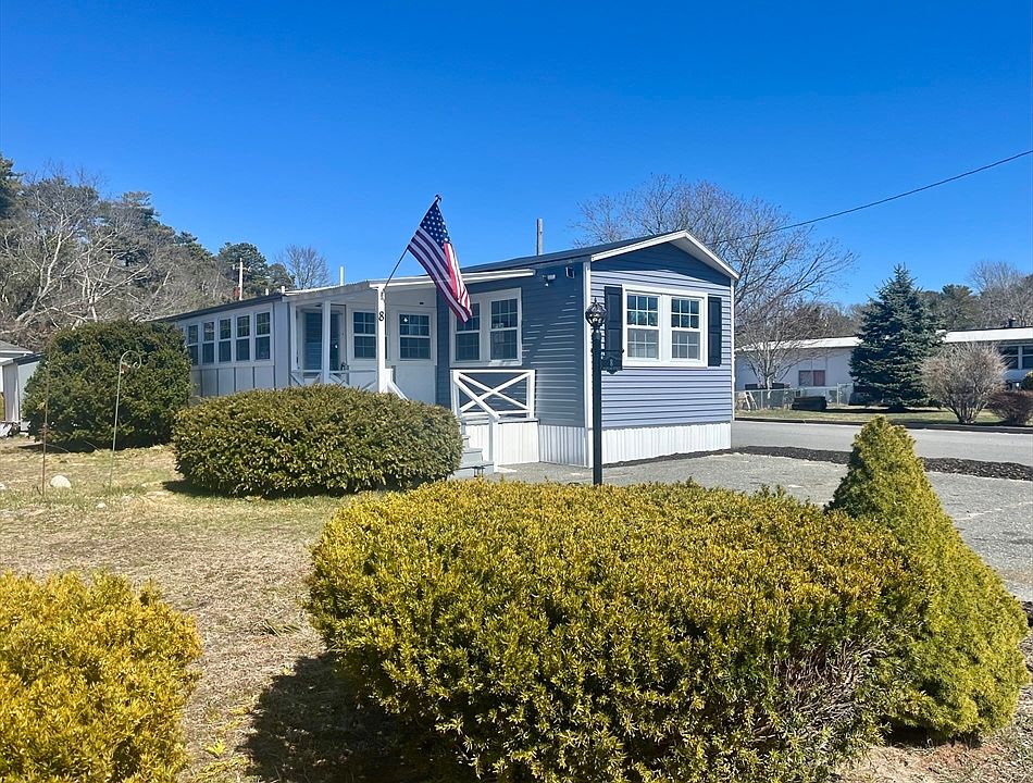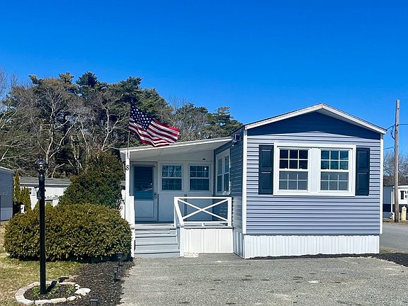 Beautifully remodeled mobile home in a 55 plus community with sparkling new kitchen... soft close cabinets, stainless steel appliances, quartz countertops, built in microwave, subway tile backsplash, black matt fixtures and knobs. Home has all new windows, siding, skirting and doors. Solid hardwood floors throughout. Bathroom has been updated with marble top soft close vanity, walk in tiled shower. Rinnai heating system with on demand water just installed. Much of the electrical system and plumbing has been updated. Livingroom has vaulted ceilings with beams. Sunroom with all new windows and herringbone tile. Front and back decks and all freshly painted in and out plus so much more has been done to this lovely home