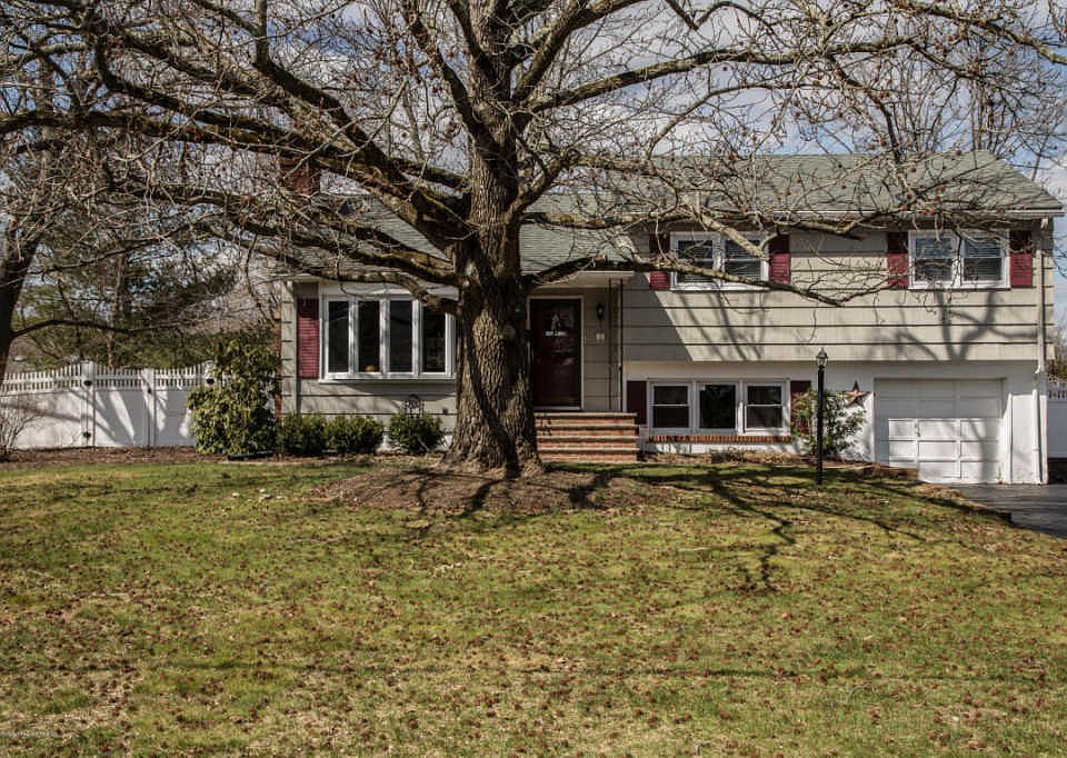 In a quiet neighborhood, on a picturesque tree-lined street, sits this gracious well-appointed split level home situated on more than 1/2 of an acre. Large, wood burning stone fireplace, hardwood floors throughout living room, dining room, & bedrooms, stainless appliances, formal living room and dining room, new carpet in family room. Pella slider opens to a large deck and expansive fenced yard. Garage has direct entry. New windows, newer roof. Close to GSP, shopping, trains, NYC ferry, Red Bank, restaurants, and blue ribbon schools. Seller can accommodate a quick closing. Just bring your belongings and your dreams.
