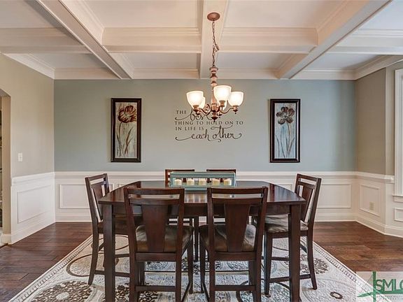 BETTER THAN NEW...this home has everything you could possibly want, then some with an unbeatable price! You will be WOWED from start to finish! Upon entering you will immediately take note of the grand staircase and highly detailed formal dining room with coffered ceilings, wainscoting and bay window. Great room adjoins the eat-in kitchen with granite counters, well-appointed cabinets, center island with breakfast bar, stainless appliances, double ovens, separate cook top, large pantry and computer desk. You will find the guest room downstairs and additional 4 bedrooms including the large master suite upstairs. Master features a cozy sitting area with fireplace,2 large closets, and upgraded bath with granite vanity, separate shower and tub. Privacy fenced backyard with screen porch and flagstone patio. Conveniently located in Pooler on quiet cul-de-sac, tucked away from the hustle and bustle in friendly, amenity-filled community of Morgan Pines, you do not want to miss seeing this one!