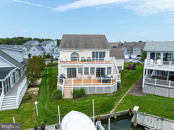 It’s all about the views & then some! Discover coastal living at its finest in this stunning 6BR, 4BA home located in Wood Duck II. Offering beautiful water views of the Bay and the Ocean City skyline, this partially furnished retreat is perfectly positioned at the end of the canal. With two Primary Suites on each floor, enjoy luxurious accommodations for family and flexibility for guests. The first level invites with a ceramic tiled foyer that enters into an open floor plan including cathedral ceilings in the living room, complete with a gas FP. The well-appointed kitchen featuring a countertop bar, SS appliances, dining area, pantry & adjacent laundry room with garage access. Step into the inviting Sunroom with ceramic tile floors, pellet stove, and sliding glass doors leading to a maintenance-free deck. Upstairs, discover two additional bedrooms, one standalone and another over the garage with separate stairs leading to a two-car garage. An office, conveniently located off one of the Primary Suites, offers glass sliding doors to yet another maintenance-free deck, perfect for viewing the sunrise or unwinding after a long day. And that's not all! With an acceptable offer, the sellers will include the 20' boat and trailer, making this waterfront retreat in Ocean Pines a dream come true. Make it yours today