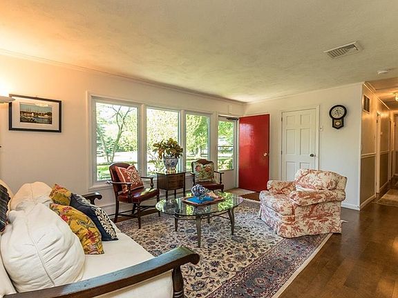 Tucked away at the end of the cul-de-sac, delight in the unexpected! Large open spaces with charm and character await - rooms flow seamlessly from one to another with multiple uses. Gleaming new hardwood floors throughout, 4 generous size bedrooms including a master suite, both bathrooms tastefully updated. All-white kitchen with granite countertops features a walk-in pantry. Only minutes away from major highways and train, a commuter's dream. After a long day relax in the covered patio area with friends or roast marshmallows and watch the fireflies over the meandering brook. Sprawling lawn both front and back, perennial gardens will bring you joy for years to come. Many improvements include new roof, chimney, floors, windows.