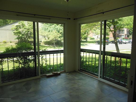 FIRST FLOOR 2 BEDROOM END-UNIT in a bright and sunny location! Great curb appeal with a pleasant walkway, and no steps to building. Situated in a convenient location close by the front entrance of the village!Numerous upgrades include: new exterior and interior slider glass doors, new windows in both bedrooms, replaced electric panel, plus a new screen door.Bright open concept kitchen w/ replaced white cabinets overlooks a spacious living room dining area w/laminate floors, plus a bright sunroom w/ beautiful tiled floors pleasant views. Clean bathroom includes 2 convenient separate entrances, a tiled floor, plus a spacious dressing room. 2 spacious bedrooms include walk-in closets and fans. Enjoy nearby parking in an assigned parking spot plus ample parking in the open lot.