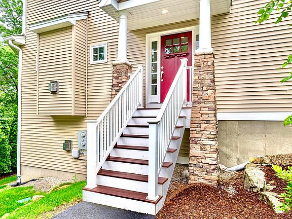 A STUNNING HOOKSETT TOWNHOME, WELCOME HOME! At Carriage Hill Estates, serenity awaits. As you enter the the main level of this end unit townhouse, you're greeted by a warm and inviting atmosphere, with beautiful hardwood floors throughout. The main floor living area allows for endless layout possibilities with large windows allowing for maximum natural light, an adorable dining area and a lovely gas fireplace. Perfect for the budding chef, the connected kitchen is complete with stainless steel appliances, gas range, granite countertops, an abundance of cabinet space and a large island with sink and breakfast bar. Glass sliders off the kitchen lead to your private deck. Head upstairs and find three bedrooms, two full bathrooms, and laundry. The primary bedroom is complete with a gorgeous en-suite and large walk-in closet. The versatile additional bedrooms can be used a home office, a guest room, or a cozy den. In the lower level, there's a fully finished basement with opportunity for so many possibilities, with a half bath, gas fireplace and walkout glass sliders to a private back yard. The massive 2-car garage allows for safe vehicle parking and storage and includes an EV charging station. Located steps away from Rte 3 and a few miles from Rte 93 with shopping & commerce just down the road, and accessible by a private path to Head's Pond trail and moments from Bear Brook State Park. DO NOT MISS THIS SPECTACULAR HOME! Open House SAT 7/22 & SUN 7/23 from 11-1pm!