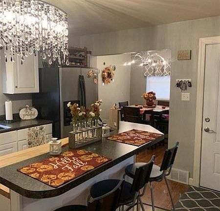 This brick ranch is in exceptionally good condition and seems larger once inside than it appears. Even though there is a large dining room, there is also a breakfast nook off from the kitchen. A full applianced kitchen is included in the sale, and the sellers have provided a one year home warranty. A large sectional sofa fits easily into the living room. The custom blinds are also staying with the purchase. Enter into the lower level where you find a family room, a lower level bedroom, the laundry room, an additional storage room, and the oversized single car garage where you can store your collection of tools. The fenced in back yard is very pleasant and private and makes a wonderful place to have family gatherings or children's birthday parties. Parking is also available in back of the home.