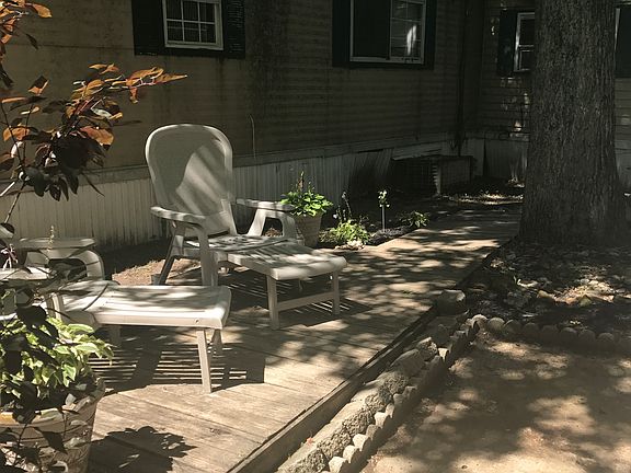 An affordable yet comfortable/charming home placed on a quiet garden lot with 2 sheds a deck patio and green park behind it