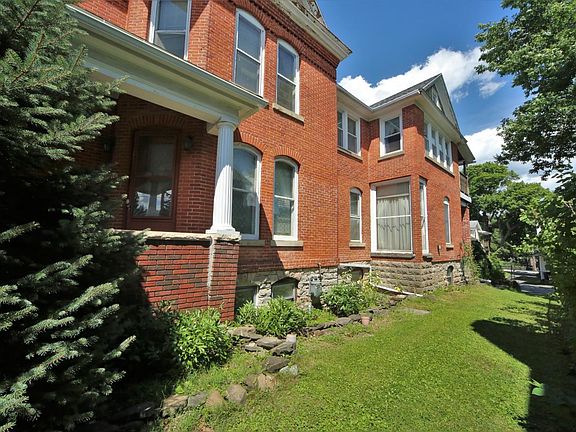 Historic and Modern melded together with NEW PRICING. This grand dame, Queen Ann era home, with wrap around front porch anchors the Oneonta Walnut St. Historic District. 4 plus bedrooms, 5 1/2 baths, 3 floors of finished living space...there is room for family and friends to visit, work and have privacy. This property has a strong local history having been owned by the Bresee Family. Original flooring, stained glass and woodwork shine. Enter through the main entrance with double stained glass doors into an open double living room and dining room. These rooms feature filigree woodwork, intricate stained glass, pocket doors and a beautiful marble gas fireplace. The kitchen is up to date with stainless steel appliances including a wine fridge, granite counters and tile floor. There is ample cupboard and counter space. The heated enclosed breakfast room/back porch off the kitchen brings the outside in through its lovely half moon windows. An updated 1/2 bath completes the first floor. Go up the main staircase to the front bedroom with high cathedral ceilings, a sitting room with built-ins and full bath is adjacent. A perfect guest bedroom with its own en-suite bath is around the corner. 2 more bedrooms, office and bathroom make working from home easy. The 2nd story porch creates a private outdoor living space for enjoying coffee in the morning or a good book. There is a full walk up attic. Go down the 2nd staircase into the basement level which has its own private entrance. The Basement is fully finished with laundry, 2 full baths and space for the perfect rec room. The basement also features the NEW state of the art, HELIX VCT high efficiency natural gas boiler. The home also has a brand new roof. The property extends through the block to Pine St where you will find 4 garage spaces. Need to isolate at home? This home has space for everyone and high speed internet galore. Convenient to all major employers, walk to downtown and all 3 local parks. This is your chance to own the beauty and grace of a bygone era with modern updates and conveniences. This is a must see!