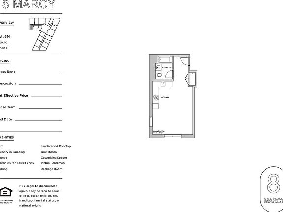 **Welcome to the Brand New 8 Marcy Avenue** Williamsburg at Your Doorstep! Designed to bring the beauty and serenity of scenic rural landscapes to the urban reality of life in the city , 8 Marcy Avenue is a stunning hybrid of nature and metropolitan living. The warm, wood tones of the well-appointed residences, the greenery, and cozy cabanas on the roof deck, and all of the attention to detail in the building plans, enhance a unique oasis of tranquility in this boutique building in the heart of a bustling section of Brooklyn. **The Residences** From the warm, wooden tones to the extraordinary natural light, your new home at 8 Marcy Ave was designed to blend the outdoors with the indoors, stepping inside these boutique residences fills you with an innate sense of calm and comfort. Every apartment at 8 Marcy Ave features: -Custom Oak Cabinetry -Organic White Caesarstone Countertops -Natural Tumbled Pebble Tile Backsplash -Seaport Ceramic Tiling -Rain Showerhead -Natural Wood Flooring -Recessed LED lighting -Stainless Steel Bosch Refrigerator/Freezer -Bosch Dishwasher **Amenities** Here, you'll find more than the customary amenities of luxury living. From top to bottom, 8 Marcy Ave was designed to accommodate all you could want or need from a modern city apartment. Amenities include: -Fitness Center -Rooftop -Bicycle Storage -Residents Lounge & Working Space -Recreation Room -Laundry Room -Package Room -Elevators -Parking -Online Portal Options for leasing, paying rent, and making maintenance requests. Neighborhood When it comes to vibrant, thriving New York neighborhoods, you'd be hard pressed to find one that stacks up to Williamsburg. From Michelin-starred restaurants to classic dive bars to nationally known music venues, 8 Marcy Ave sits at the center of an area teeming with culture and life.