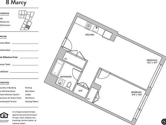 *Welcome to the Brand New 8 Marcy Avenue* Williamsburg at Your Doorstep! Designed to bring the beauty and serenity of scenic rural landscapes to the urban reality of life in the city , 8 Marcy Avenue is a stunning hybrid of nature and metropolitan living. The warm, wood tones of the well-appointed residences, the greenery, and cozy cabanas on the roof deck, and all of the attention to detail in the building plans, enhance a unique oasis of tranquility in this boutique building in the heart of a bustling section of Brooklyn. Whether you need another room for yourself or for others, our two bedroom apartment gives you the space you need to live the life you love. The Residences From the warm, wooden tones to the extraordinary natural light, your new home at 8 Marcy Ave was designed to blend the outdoors with the indoors, stepping inside these boutique residences fills you with an innate sense of calm and comfort. Every apartment at 8 Marcy Ave features: -Custom Oak Cabinetry -Organic White Caesarstone Countertops -Natural Tumbled Pebble Tile Backsplash -Seaport Ceramic Tiling -Rain Showerhead -Natural Wood Flooring -Recessed LED lighting -Stainless Steel Bosch Refrigerator/Freezer -Bosch Dishwasher -In-Unit W/D Amenities Here, you'll find more than the customary amenities of luxury living. From top to bottom, 8 Marcy Ave was designed to accommodate all you could want or need from a modern city apartment. Amenities include: -Fitness Center -Rooftop -Bicycle Storage -Residents Lounge & Working Space -Recreation Room -Laundry Room -Package Room -Elevators -Parking -Online Portal Options for leasing, paying rent, and making maintenance requests. Neighborhood When it comes to vibrant, thriving New York neighborhoods, you'd be hard pressed to find one that stacks up to Williamsburg. From Michelin-starred restaurants to classic dive bars to nationally known music venues, 8 Marcy Ave sits at the center of an area teeming with culture and life.