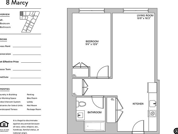 *Welcome to the Brand New 8 Marcy Avenue* Williamsburg at Your Doorstep! Designed to bring the beauty and serenity of scenic rural landscapes to the urban reality of life in the city , 8 Marcy Avenue is a stunning hybrid of nature and metropolitan living. The warm, wood tones of the well-appointed residences, the greenery, and cozy cabanas on the roof deck, and all of the attention to detail in the building plans, enhance a unique oasis of tranquility in this boutique building in the heart of a bustling section of Brooklyn. The Residences From the warm, wooden tones to the extraordinary natural light, your new home at 8 Marcy Ave was designed to blend the outdoors with the indoors, stepping inside these boutique residences fills you with an innate sense of calm and comfort. Every apartment at 8 Marcy Ave features: -Custom Oak Cabinetry -Organic White Caesarstone Countertops -Natural Tumbled Pebble Tile Backsplash -Seaport Ceramic Tiling -Rain Showerhead -Natural Wood Flooring -Recessed LED lighting -Stainless Steel Bosch Refrigerator/Freezer -Bosch Dishwasher -In-Unit W/D Amenities Here, you'll find more than the customary amenities of luxury living. From top to bottom, 8 Marcy Ave was designed to accommodate all you could want or need from a modern city apartment. Amenities include: -Fitness Center -Rooftop -Bicycle Storage -Residents Lounge & Working Space -Recreation Room -Laundry Room -Package Room -Elevators -Parking -Online Portal Options for leasing, paying rent, and making maintenance requests. Neighborhood When it comes to vibrant, thriving New York neighborhoods, you'd be hard pressed to find one that stacks up to Williamsburg. From Michelin-starred restaurants to classic dive bars to nationally known music venues, 8 Marcy Ave sits at the center of an area teeming with culture and life.