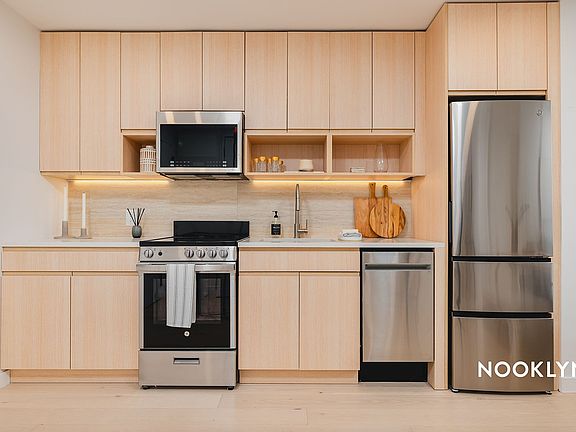 **Extra large 1 bedroom with Laundry hookup in the apartment** **No Broker fee** Williamsburg at Your Doorstep! Designed to bring the beauty and serenity of scenic rural landscapes to the urban reality of life in the city , 8 Marcy Avenue is a stunning hybrid of nature and metropolitan living. The warm, wood tones of the well-appointed residences, the greenery, and cozy cabanas on the roof deck, and all of the attention to detail in the building plans, enhance a unique oasis of tranquility in this boutique building in the heart of a bustling section of Brooklyn. **The Residences** From the warm, wooden tones to the extraordinary natural light, your new home at 8 Marcy Ave was designed to blend the outdoors with the indoors, stepping inside these boutique residences fills you with an innate sense of calm and comfort. **Every apartment at 8 Marcy Ave features -Custom Oak Cabinetry -Organic White Caesarstone Countertops -Natural Tumbled Pebble Tile Backsplash -Seaport Ceramic Tiling -Rain Showerhead -Natural Wood Flooring -Recessed LED lighting -Stainless Steel Bosch Refrigerator/Freezer -Bosch Dishwasher **Amenities** Here, you'll find more than the customary amenities of luxury living. From top to bottom, 8 Marcy Ave was designed to accommodate all you could want or need from a modern city apartment. Amenities include: -Fitness Center -Rooftop -Bicycle Storage -Residents Lounge & Working Space -Recreation Room -Laundry Room -Package Room -Elevators -Parking -Online Portal Options for leasing, paying rent, and making maintenance requests. **Neighborhood** When it comes to vibrant, thriving New York neighborhoods, you'd be hard pressed to find one that stacks up to Williamsburg. From Michelin-starred restaurants to classic dive bars to nationally known music venues, 8 Marcy Ave sits at the center of an area teeming with culture and life.