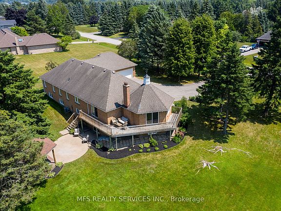 Welcome to 8 Marilyn Ave. a classic ranch-style bungalow, perfectly set on a 1.2 Acre lot within the peaceful, established community of Gormley. This 3 +1 bedroom home exudes timeless appeal and comfortable living highlighted by elegant granite floors, polished hardwood floors, and bay windows that enhance its warm atmosphere. The main floor offers practical and inviting spaces with a functional flowing floor plan. Enter the bright grand room to be greeted by vaulted ceilings, stone fireplace with wood burning stove and walk out to elevated back deck. The functional, family-sized kitchen includes an eat-in area leading to the dining room ready to host more formal gatherings. Excellent potential for rental, in-law suite, or extended family living with sprawling finished basement featuring a 4-pc bath, additional bedrooms, kitchen and separate entrance access through walk out and garage. Basement equally provides great recreational uses with existing wet bar, wood burning stove and walk out to backyard patio. Large 3 car garage with direct access to home and plenty of exterior parking for 9 cars plus. Enjoy the park like setting of this expansive yard with Gazebo and loads of greenspace for family gatherings and entertaining. Conveniently located near shopping, service related and medical amenities & Highway 404. A short stroll to Vandorf Park and community center, Harmony hall arts venue, Walking trails and close proximity to private and public golf courses. A truly unique enclave of estate lot living.