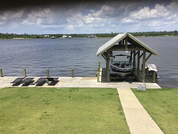 Why build when you have this beautiful one floor plan already finished and Summer Ready! Enjoy the lake, not construction deadlines! Waterfront property that doesn’t get any better. Positioned on a cul-de-sac near new entrance. Great Lake and sunset panoramic views. Some furniture and appliances stay with the purchase. Outdoor screened living room with TV. Sprinkler system. Landscaped with circular concrete driveway. Large sun deck with lounge chairs(included) Custom Adirondack chairs (included). Awesome detached garage/storage room that holds your golf cart and all those water toys.