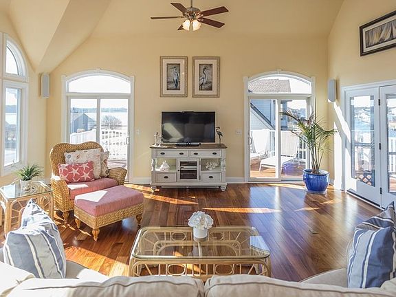 WATERFRONT AND BOATABLE! 270 degrees of stunning water views. This fully updated 4 bedroom, 3 bath home is custom built with the main living space on the second floor to maximize water views throughout. Grand open living space flows seamlessly to the outside with a large screened-in porch and side deck overlooking water from all angles. Additional family room can be used as a media room, office, or 5th bedroom suite. Lower level features a private deck with outdoor shower off of the master bedroom, a paver patio for additional outdoor dining,and a second patio with hot tub for the ultimate outdoor waterfront living. Heavy duty boat lift, dock, and extra mooring whips allow for storage of 2 boats right in your own backyard! Additional features include hard-wired surround sound speakers in living room and hard-wired outdoor speakers on screened-in porch, hardwood floors, new stainless steel appliances, granite counter tops with glass tile backsplash, double headed shower in master bathroom with jetted tub, tile floors in the bathrooms, ceiling fans throughout, and much more! Agent is related to seller.