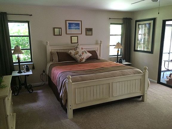 Need lots of room at a reasonable price? This is the one you have been looking for. 3 bedrooms, 2 baths Huge family room with fireplace and solar tubes to light your way. New roof in 2015, New 13 SEER Heat Pump in 2015. All on a private Cul-De-Sac. Stainless steel appliances, solid surface countertops. Master bedroom is large with a bath that features separate sinks and walk through shower. Of course his and her closets. Access to the 35-foot lanai from 3 different areas. Pass-thru from the kitchen to lanai adds to the convenience of those family barbeques. 2nd and 3rd bedrooms are ample size. Indoor laundry room. Large 2 car garage(22 x 23) with workbench and storage shelves. Vinyl fenced back yard featuring new sod for your pets or children. Termite Contract available.