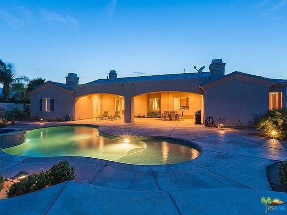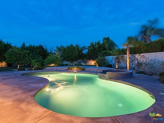 Enjoy amazing "fun in the sun" at this newly available luxury home rental in the prestigious gated community in Rancho Mirage. The living area offers plenty of comfortable seating around a wonderful and warm fireplace. The formal dining room seats 8 people, and will surprise you with the rare mid century Italian furniture with marquetry inlays and wood carvings. The great room offers another dining area for 6, and more comfortable seating around Samsung 65" HDTV with DVD player and fireplace. The palatial master suite with a 42" HDTV and it's very own fireplace is very private and enjoys direct access to the pool deck. The other 2 bedrooms in the main house are both generously sized, each bedroom offering Queen size beds, en-suite bathrooms and closets. One bedroom has a 32" combo HDTV/DVD. The bonus room is the den/office with a twin sofa sleeper and en-suite bathroom for added flexibility. The spacious casita has a full size bed, desk, a 40" HDTV with DVD player and ensuite bathroom.
