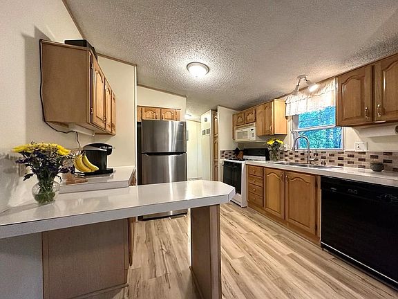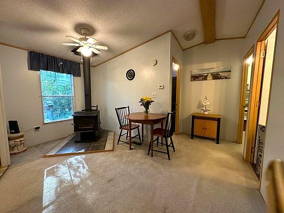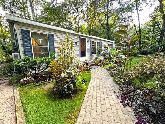 If you are looking for a private lot to enjoy the great outdoors, wildlife from your deck, and listen to a babbling brook this is the home for you! This charming 1998 manufactured home offers one level living with 3 beds and 2 baths. Nestled on its own land, the property boasts a private backyard with a new deck 2023, perfect for relaxation. Additionally, this home offers a kitchen with a peninsula for additional cooking space, maple cabinets, and a new refrigerator 2023. The primary bedroom has a private full bath and closet. Both bathrooms had new flooring installed in 2023. There is laundry hookup on the main level as well as a wood burning stove to keep you warm on cold winter nights .As you step into the beautifully landscaped surroundings, be greeted by a vibrant display of beautiful exotic flowers, adding a touch of natural beauty. Don't miss your chance to own this delightful property! Property should meet financial requirements for FHA & VA.