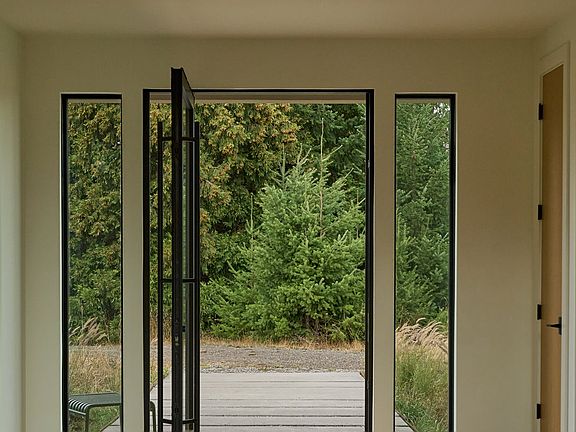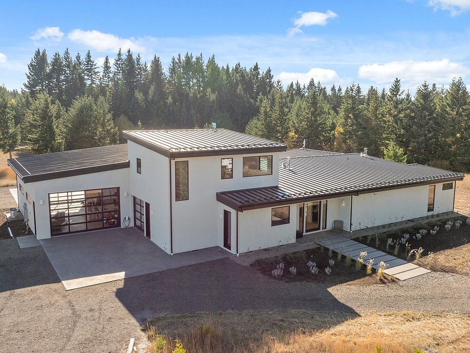 Modern Refinement Meets Timeless Luxury. A work of architectural art, this newly built 2024 residence is nestled on 5 private acres just 15 minutes from White Salmon — where design, technology, and craftsmanship unite in flawless harmony. Every detail in this home was chosen with intention, from the hand-sourced Moroccan Zia tile in the entryway to the exquisite onyx sinks from Turkey and one-of-a-kind pendant lights from Ukraine. Step through the 8-foot glass pivot door into a space bathed in natural light, courtesy of the home’s south-facing orientation and 10-foot sliders that open to a future courtyard oasis. The touch-latch, white oak grain-match cabinetry flows seamlessly through the custom kitchen, butler’s pantry, and closets — complemented by Brazilian and Laguna Bay quartzite surfaces, a Bertazzoni 36” gas range, and a panel-ready 48” JennAir refrigerator. The living room centers around a Mezzo Glo double-view gas fireplace, while the primary suite offers a retreat of warmth and sophistication with a wood-burning fireplace, Roman clay finishes, a freestanding soaking tub, rain shower, and brass Kohler fixtures throughout. A spacious upstairs ADU offers flexibility for guests or extended family, complete with a full kitchen, luxury appliances, and wraparound windows. Function and technology meet beauty here: a heated driveway and garage apron, 4-car insulated drive-through garage with glass doors, dual EV chargers, Starlink internet with T-Mobile backup, built-in surround sound, dimmable lighting, Unifi security system, and even a Roborock S8 Max with auto-fill and drain. Wide 5-foot hallways, 7-inch Allwood champagne flooring, and premium Pella windows with a lifetime warranty enhance both comfort and elegance. This home isn’t just designed to be lived in — it’s meant to be experienced.