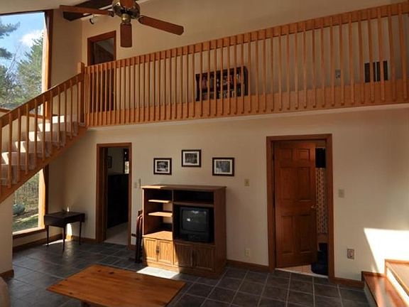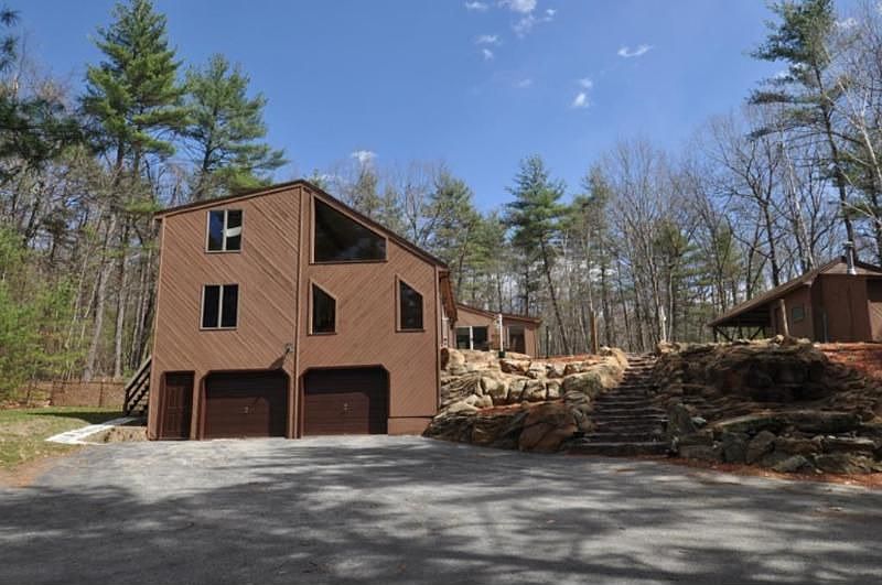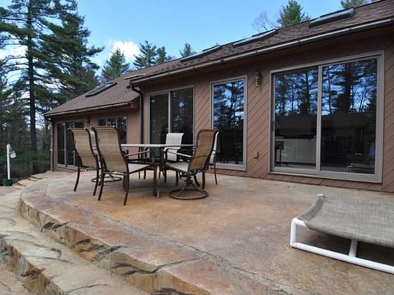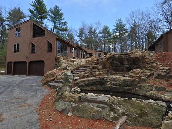 Looking for GREEN? Delightful private setting combines with easy access to major routes for this outstanding Windham contemporary. This 3+ acre lot is a mix of open and wooded areas, with a significant portion fenced. South facing side with abundant glass with sliders, windows as well as motorized weather sensitive skylights contribute to a fabulous passive solar effect.The outdoor living space includes a raised stone patio, heated in-ground pool surrounded by patio, gardens, hot tub, covered sitting area, storage area, hot and cold shower and a large waterfall. There are two additional decks on other sides of the house for the folks who want to chase or move out of the sun.Sunny and bright, the interior offers first floor living with a full basement as well as a second floor bedroom. Vaulted ceiling and fireplace create a wonderful ambiance for the first floor master suite with full bath and sunken tub, separate shower and private sunning deck. The other two bedrooms feature walk-in closets and each has a bath. There is a fourth choice for a bedroom with a large closet in the finished lower level.Dramatic open great room with cathedral ceiling, hardwood floors, sliders to the patio and pool, is a fabulous gathering room. Floor to ceiling wood burning brick fireplace accents the vaulted ceiling. Dining area with glass doors opening to the patio/pool area, abuts the kitchen. Ceramic tile, updated counters, center island counter with ceramic electric cook top, wall oven, and adjacent laundry room.The lower level features an extensive workshop area. There is a finished room for use as an office or home gym. There is access to the over-sized two car garage with walk-out.l The entry area offers space for a mudroom style sitting and coat area.
