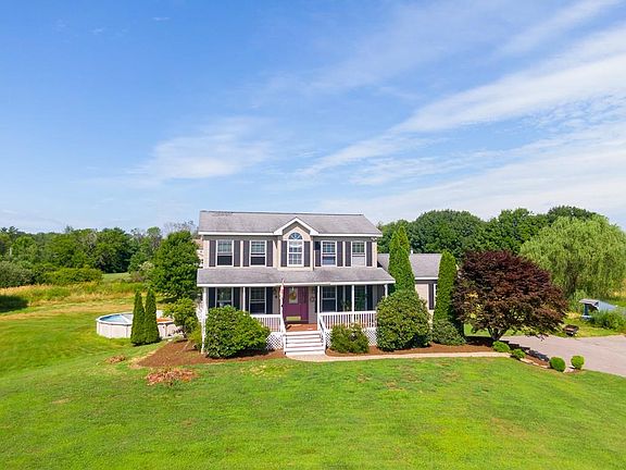 Great country home nestled at the end of a cul de sac on 4+ sprawling acres! As you drive up the private driveway, you will find a four stall horse barn built in 2010. The farmers porch is a great spot to take in the scenic views of the land around you or relax on the 2 tier deck. Enter into the home and on the first floor you will find hardwood floors throughout, formal dining room with french doors, living room, kitchen which features plenty of storage, pantry and recessed lighting. First floor also features a great room with newly installed laminate flooring and wood stove! On the second level there are 3 bedrooms with new carpet which includes the master with double walk-in closets. Home also features a new high efficiency propane heating system! Come see all this home has to offer! Showings begin Monday, July 29th.