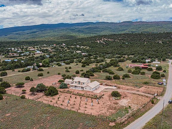 Under Contract with first right of refusal. Welcome home to your own slice of New Mexico paradise. This newer, 2022 built home has plenty of room at approximately 2850sqft, 4 bedroom, 4 bathrooms, insulated and heated oversized 3 car garage, wrap around porch, functional barn with upstairs storage/play house, all on 2.4 acres. This home is efficiently equipped with ductless mini splits and solar. Enjoy the view of the growing fruit trees from the front porch. The trees and garden are watered mainly by the 1500 gallon rain water catch storage tank. Schedule your showing today to experience this gem of a property. Parcel lot lines in photos are approximate.