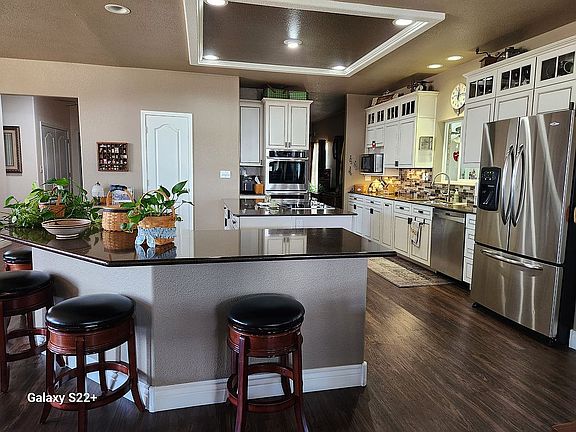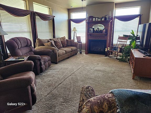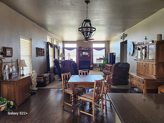 Beautifully maintained 3 bedroom/2 bathroom brick and siding ranch-style home on 2.5 acres with numerous desirable amenities including a functional open concept layout, spacious attached 2 car garage and a tranquil outdoor haven. This home has ample storage throughout the entire property. The stylish kitchen features 2 islands, abundant cabinet space, double oven and cook top. There are two eating areas included in the open area with a formal dining space and daily eating breakfast area between the kitchen and family room. A gas fireplace is a focal point of the spacious family room. The primary bedroom features a bathroom with a jet tub , separate shower and walk-in closet. The home also boasts a large office with plenty of counter and cabinet space. There is also a large sunroom/multipurpose room with numerous possibilities of uses. The back yard features a lush, beautifully landscaped irrigated yard with private fencing and a covered patio great for a relaxing evening or entertaining. It also features a view of Rabbit Ears Mountain for picturesque sunset gazing. Just a few steps away is a 30 x 40 detached insulated and heated workshop ideal for hobbies, work or storage and includes a working bathroom. This property offers comfortable, functional and peaceful country living both indoor and outdoor and is located only 2 miles east of Clayton.