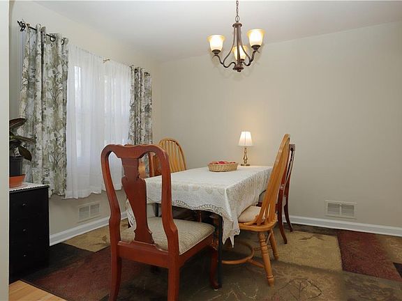 Nicely kept home, clean, all hardwood flooring has been beautifully refinished, newer replacement windows and new blinds. Eat-in-kitchen, dining room with built in hutch, bright living room, plenty of natural light. Cedar coat closet, master bedroom with 2 closets, entire home was just freshly painted on the inside. Breezeway can be used as a 3 seasons room with slate floor, entrance to one car garage has a new door and opener. The backyard can also accessed by the breezeway. Large yard is partially fenced with a covered paver porch and patio. Full, dry, basement with laundry, recreation utility and workshop areas. All electrical outlets, switches and fixtures have been replaced. Commuters delight, easy access to Route 18, NJ Turnpike, Route 1, close proximity to NYC bus.