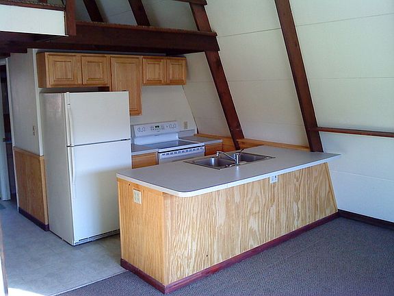 Charming A-frame cabin. Recently remodeled including wood floors, carpeted loft. Pleasant neighborhood, state lands close by, beautiful wooded lot in an established wooded development, large deck facing the water, small beach area, plenty of parking. Baseboard heat supplemented by a pellet stove. Small storage shed available, no garage. Handy types preferred as owner is not always immediately available and the relatively beautiful but remote area sometimes experiences power outages; a generator is supplied. Ideal for one or two persons. Sorry, no pets or smokers.