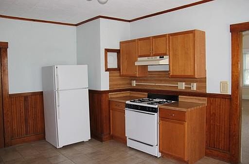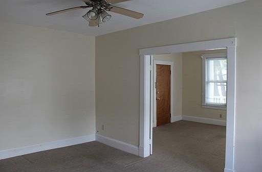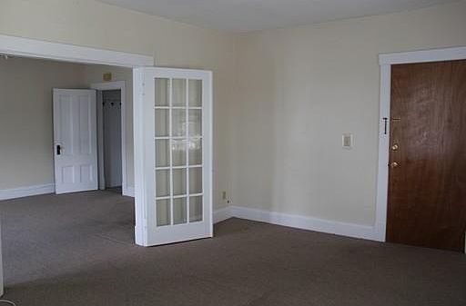 Spacious apartment on 2nd floor of older historic 5 family home. Apartment has 5 rooms with kitchen, dining room, living room and two bedrooms. 9 foot ceilings, eat in kitchen, wall to wall carpet in each room except kitchen which has tile. Shared front porch. Off street parking in rear. Heat included. 1st, last, security, references and credit check required. No smoking inside building and no pets. One year lease. Available now. Shared washer and dryer in lower level. Rental application on MLS paperclip.